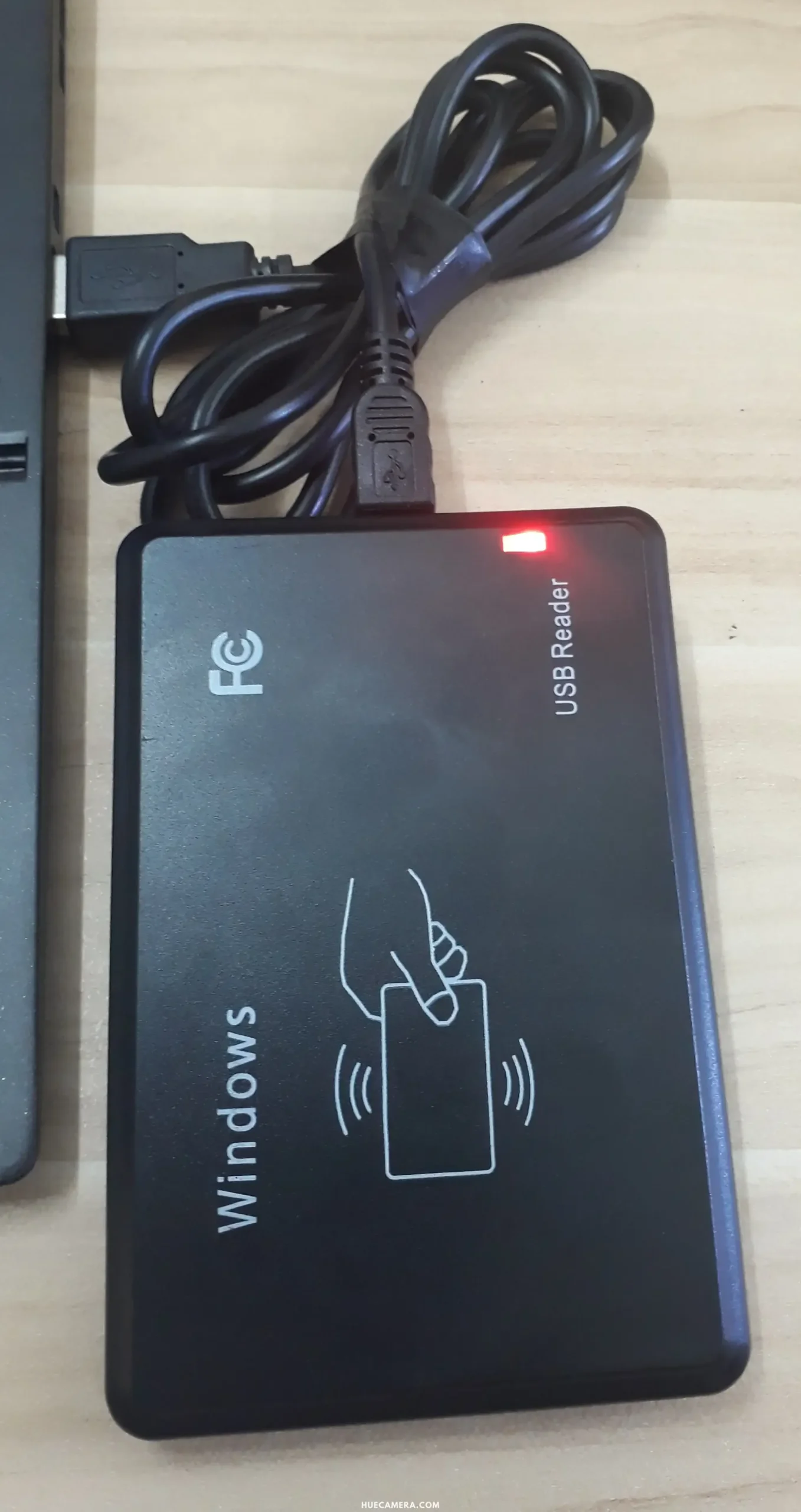 Bước 1: Cấp nguồn cho đầu đọc, kết nối đầu đọc thẻ với máy tính bằng cáp USB.